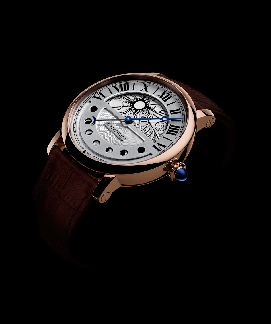 - Horas, minutos, indicadores de día y noche con fases lunares retrógradas