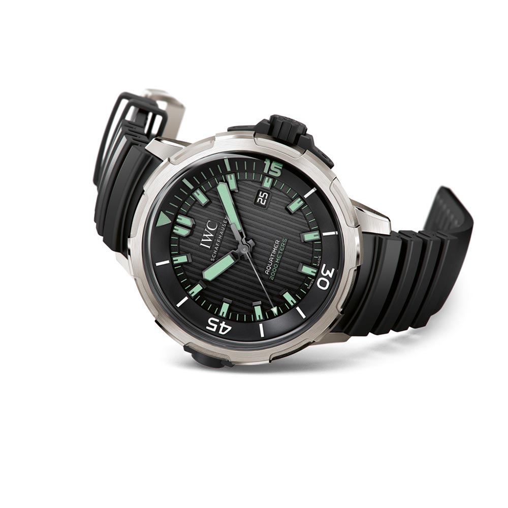 Caja: Caja de titanio Diámetro 46 mm, altura 20,5 mm Bisel giratorio exterior-interior con sistema SafeDive de IWC Cristal de zafiro, abombado, antirreflejos por ambos lados Fondo de la caja grabado Corona atornillada Hermético hasta 2000 metros Esfera: Negra Elementos luminiscentes en las agujas, la esfera y el bisel giratorio interior Funciones: Horas y minutos Segundero central con dispositivo de parada Indicación de la fecha Movimiento: Calibre de manufactura 80110 automático 28.800 alteranancias/hora 28 rubíes 44