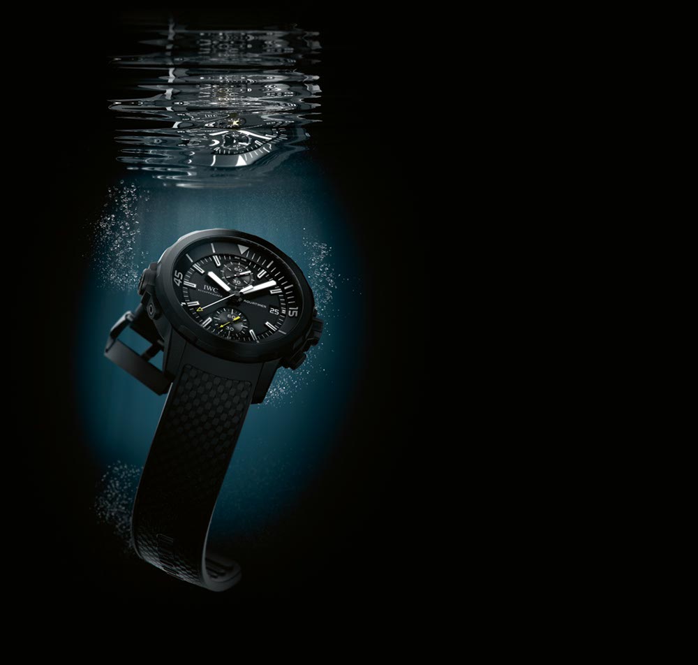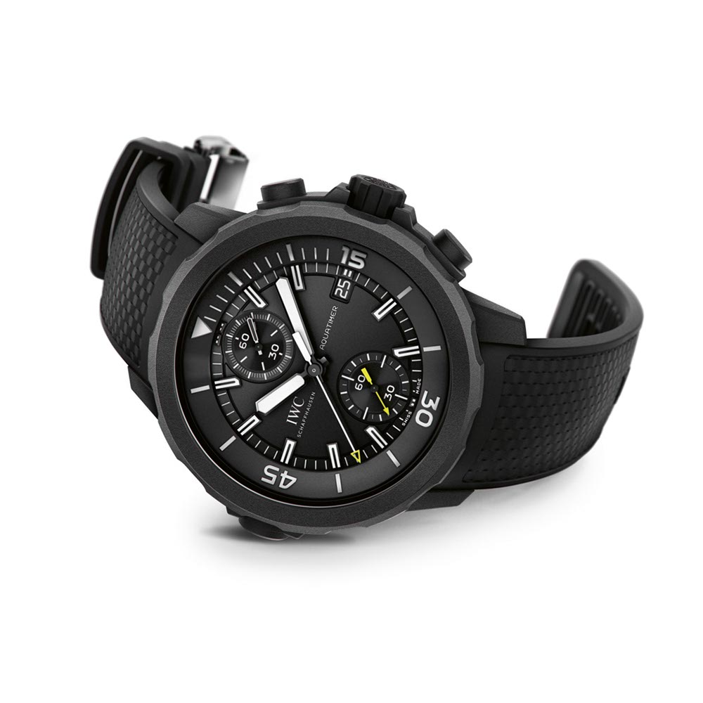 Caja: Caja de acero revestida de caucho Diámetro 44 mm, altura 17 mm Bisel giratorio exterior-interior con sistema SafeDive de IWC Cristal de zafiro, abombado, antirreflejos por ambos lados Fondo de la caja grabado Corona atornillada Hermético hasta 300 metros Esfera: Negra Elementos luminiscentes en las agujas, la esfera y el bisel giratorio interior Funciones: Horas y minutos Pequeño segundero con dispositivo de parada Indicación de la fecha Cronógrafo Movimiento: Calibre de manufactura 89365 automático 28.800