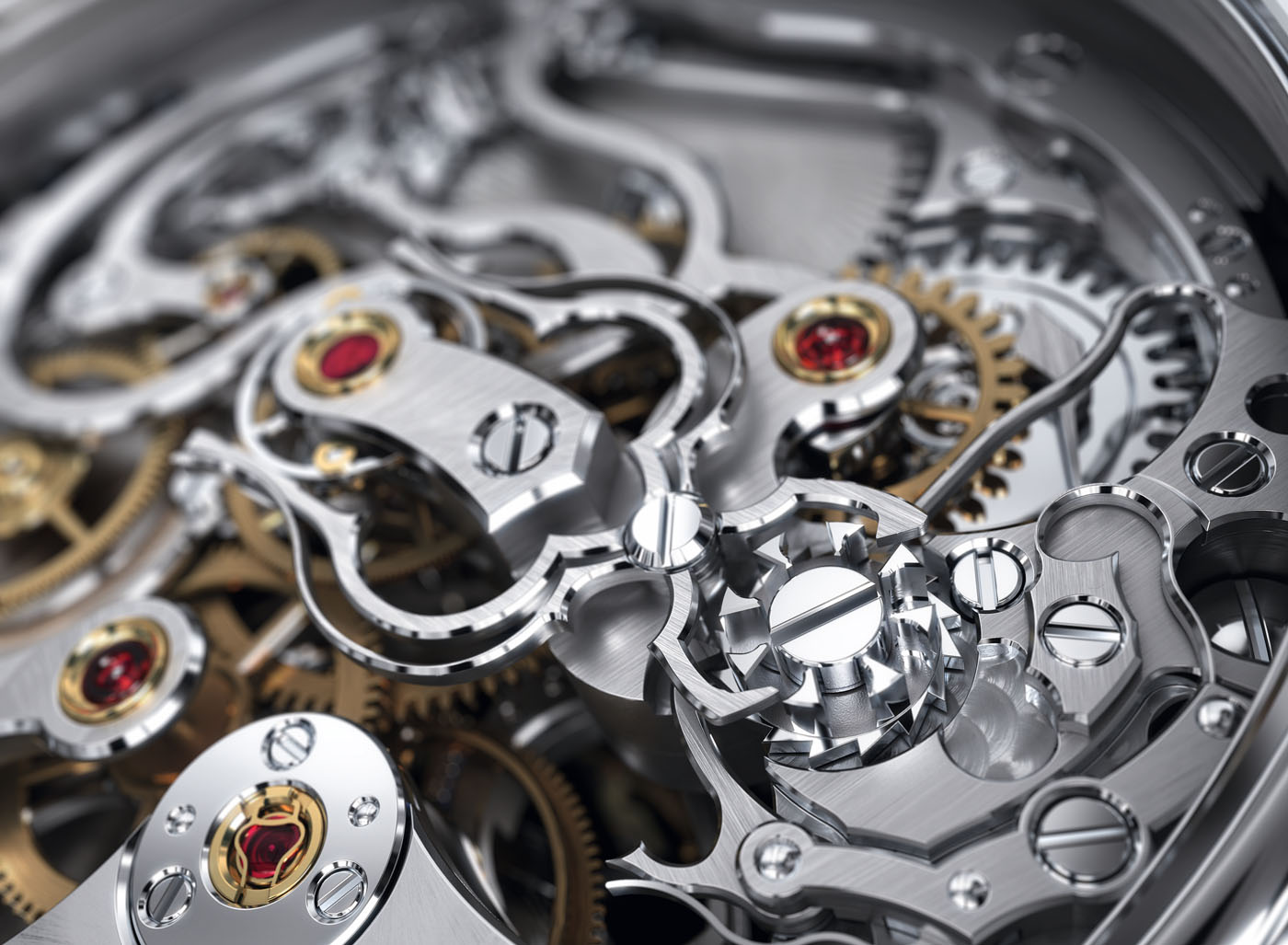 - Engranajes dorados, radios facetados, barriletes con centros pulidos