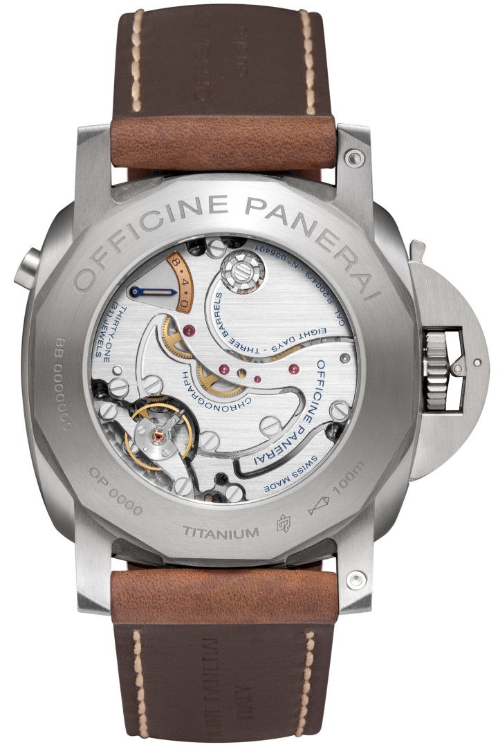 - Correa de aligátor personalizada con el logotipo de PANERAI y cierre trapezoidal de titanio satinado. Se entrega con una segunda correa intercambiable, herramienta para el cambio de correa y destornillador de acero