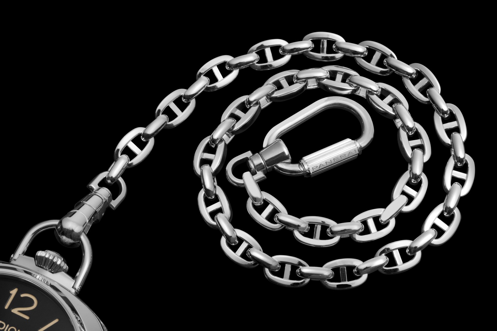 - Cadena personalizada con el logotipo de PANERAI en oro blanco pulido de 18 quilates