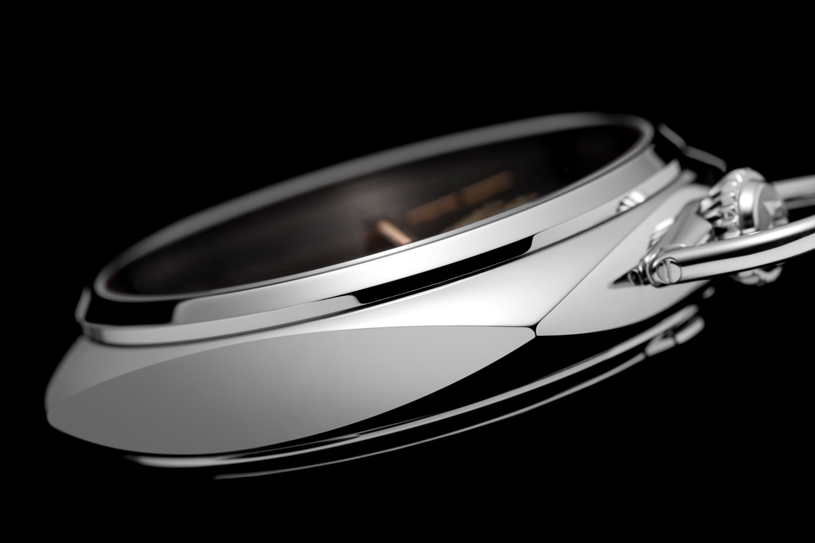 - Fondo: tapa articulada, oro blanco pulido de 18 quilates