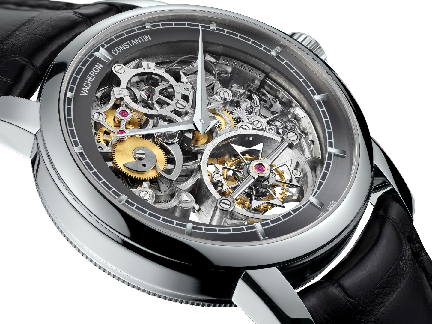 Caja: Platino 950 Diámetro 42 mm; altura 12,22 mm Cristal de zafiro Fondo: cristal de zafiro transparente Hermético hasta 30 metros Esfera: Anillo exterior color pizarra con índices de oro blanco aplicado y minutero en blanco Funciones: Horas y minutos. Pequeño segundero a las 6, sobre la caja del tourbillon Reserva de marcha Tourbillon Movimiento: Calibre 2260 SQ de manufactura, manual 29,10 x 6,80 mm de altura 31 rubíes 231 componentes 18.000
