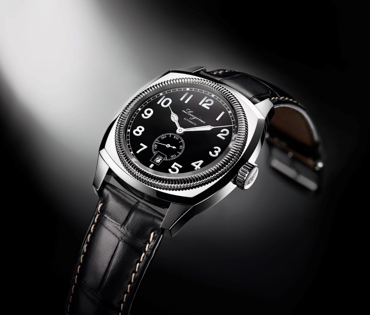 Caja: Acero pulido Diámetro 42 mm Cristal de zafiro resistente a los arañazos con varias capas antirreflejos Hermético hasta 30 metros Esfera: Negra mate 11 números árabes pintados recubiertos con Super-LumiNova® Agujas pera esqueleto, rodiadas, enarenadas, con Super-LumiNova® Funciones: Horas y minutos. Pequeño segundero. Fecha Movimiento: Calibre L615 (ETA 2895/2) 27 rubíes 28.800 semioscilaciones/hora Reserva de marcha de 42 horas Pulsera: Piel de aligátor negra con hebilla [gallery ids="2300,2299"]