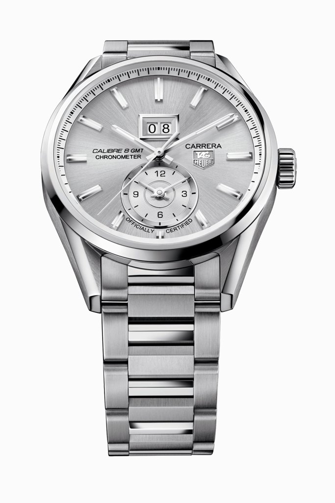 Caja: Acero pulido Diámetro 41 mm Bisel pulido Corona pulida con el logotipo TAG Heuer Cristal curvado de zafiro antirrayaduras y doble tratamiento antirreflejos Reverso de cristal de zafiro antirrayaduras Hermético hasta 100 metros Esfera: Opalina plateada blanca, opalina negra o antracita con efecto rayos de sol Manecillas de horas y minutos facetadas y pulidas, con marcadores luminiscentes Manecilla del segundero Manecilla GMT pulida con punta en