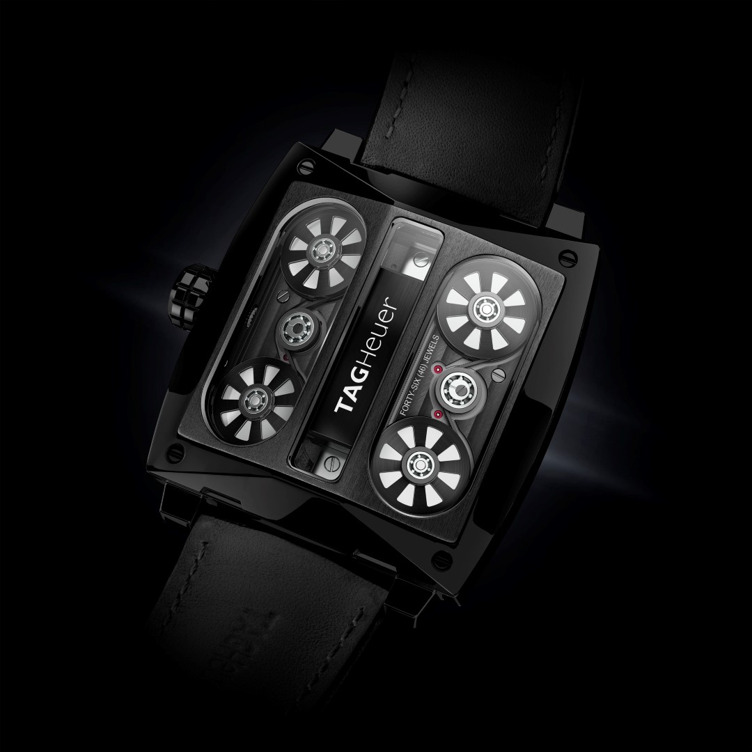 - Logotipo de TAG Heuer blanco grabado a las 5h
