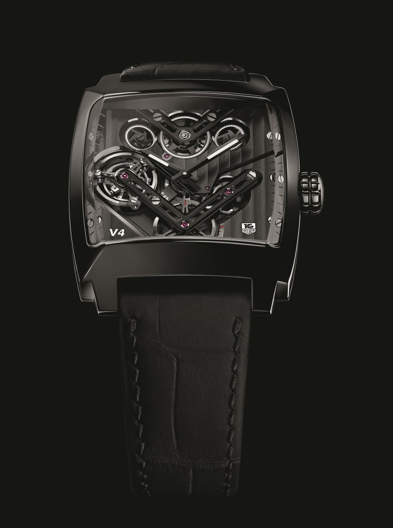 Caja: Titanio pulido grado 5 con recubrimiento de carburo de titanio Diámetro 41 x 41 mm Cristal biselado de zafiro con doble tratamiento antirreflejos Reverso de cristal de zafiro en 3 secciones Hermético hasta 50 metros Esfera: Tourbillon dirigido por correas a las 9 2 puentes en forma de V recubiertos en negro y pulidos 3 puentes recubiertos de negro con acabado Côtes de