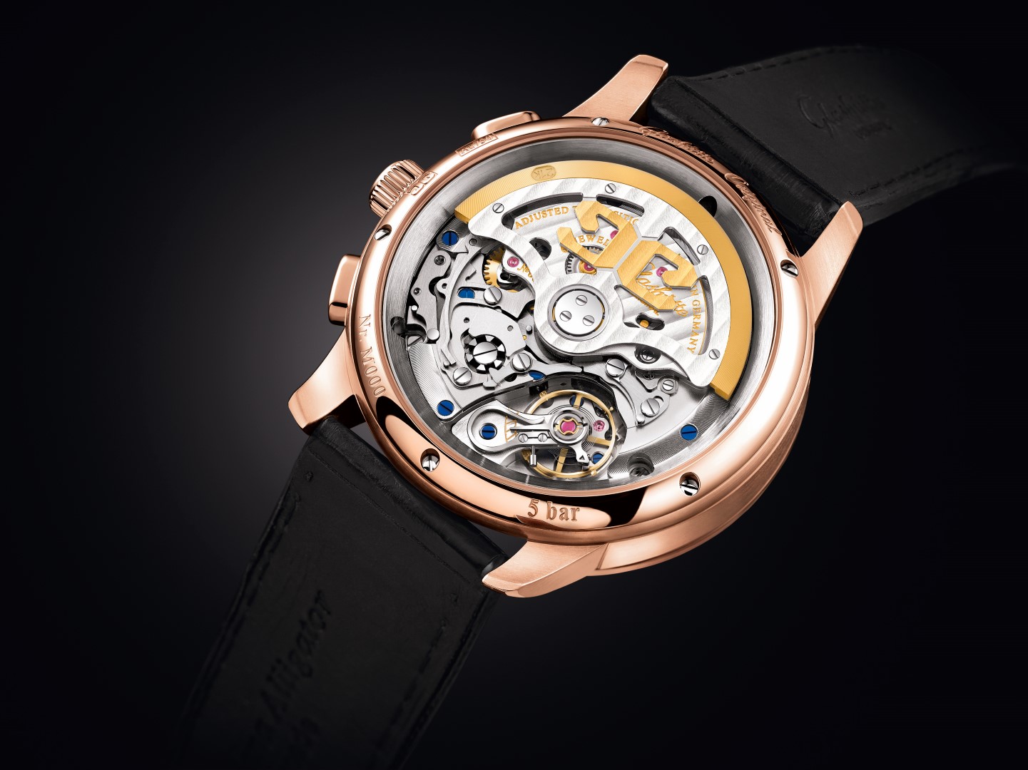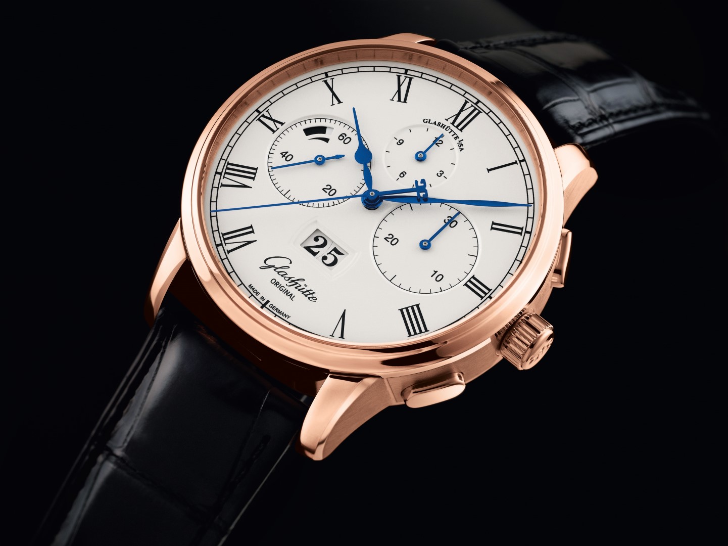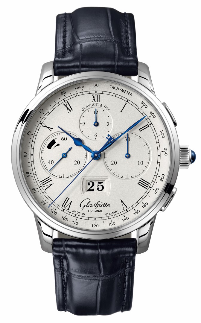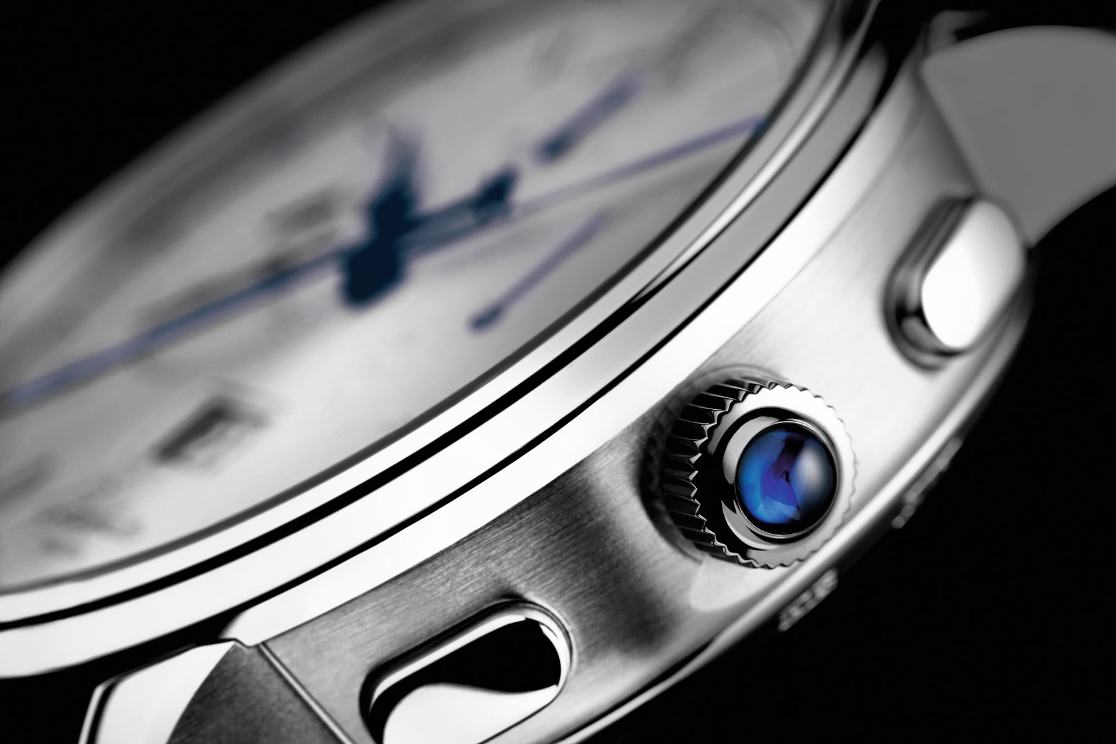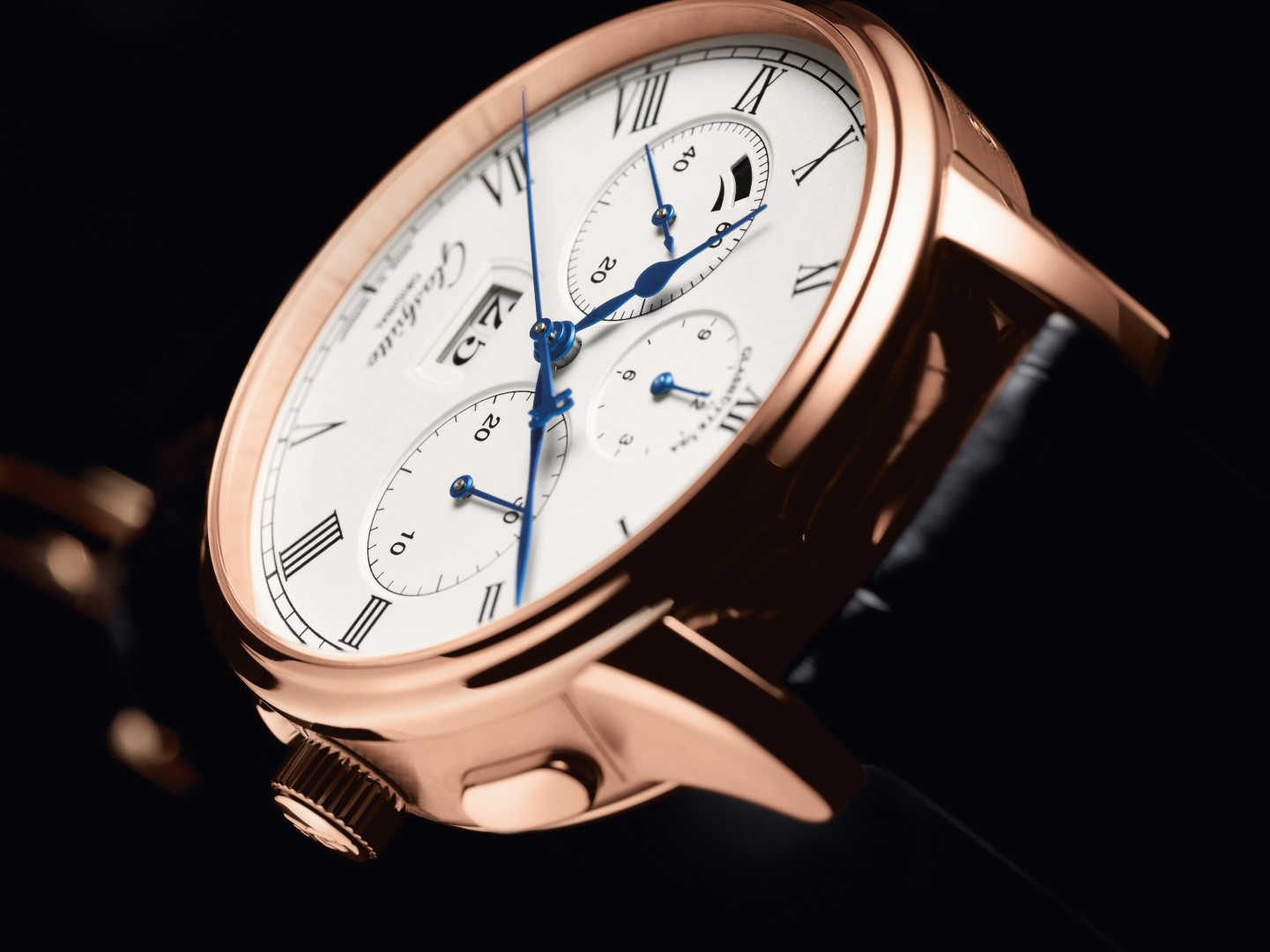 - Contador de 30 minutos a las 3, pequeño segundero a las 9 con sector de reserva de marcha. Contador de 12 horas a las 12. Gran fecha a las 6 horas