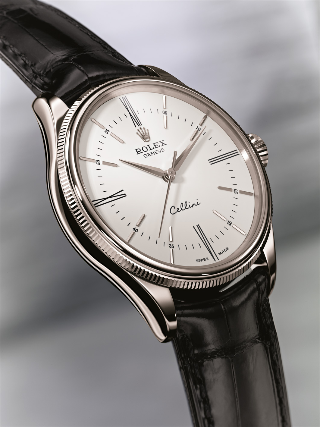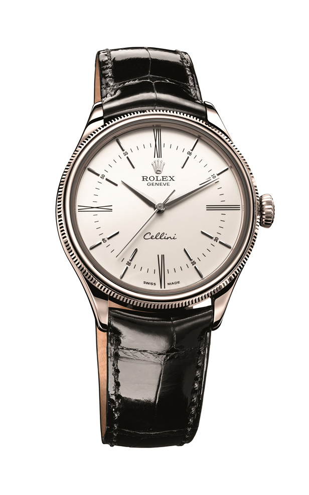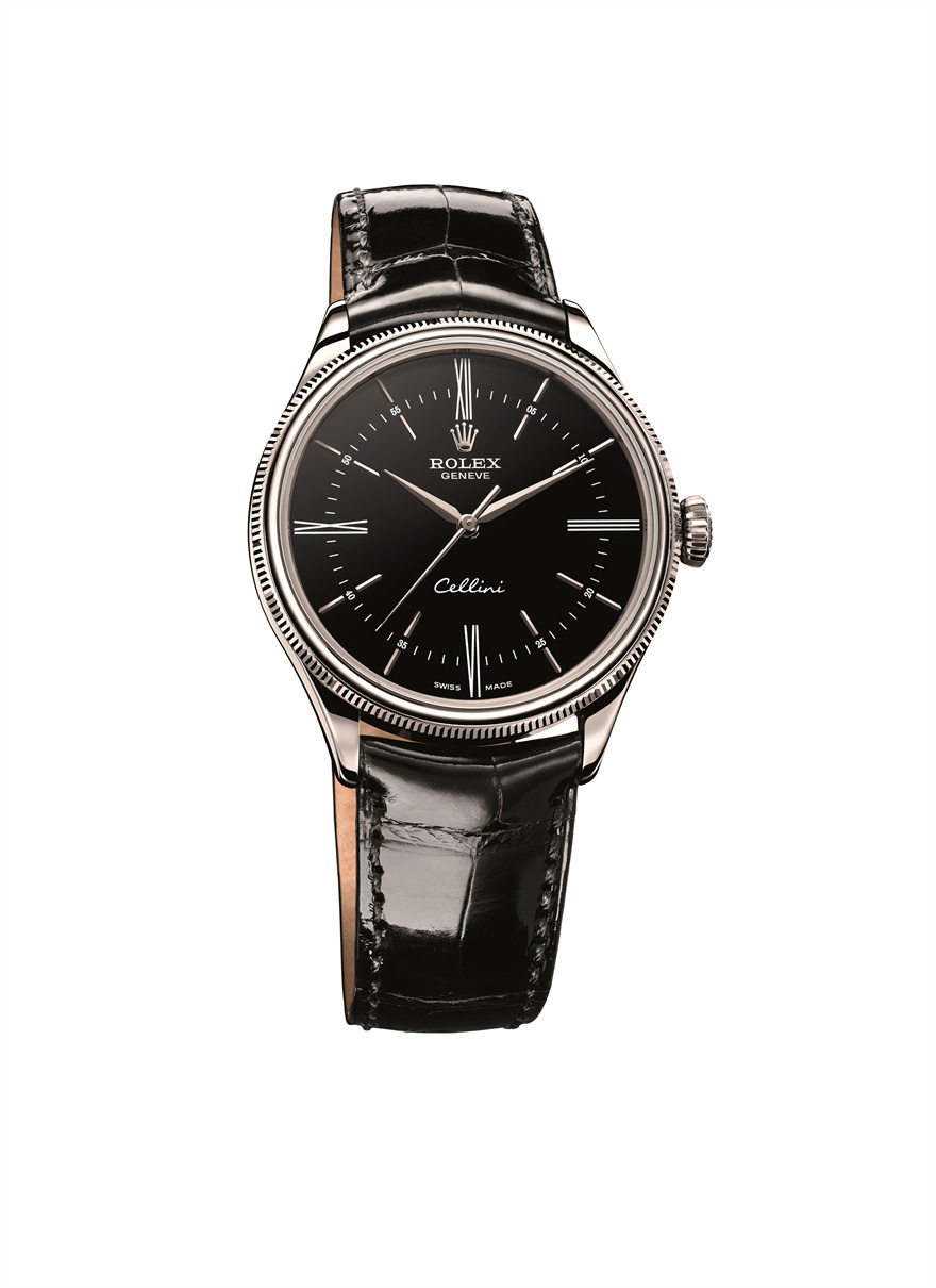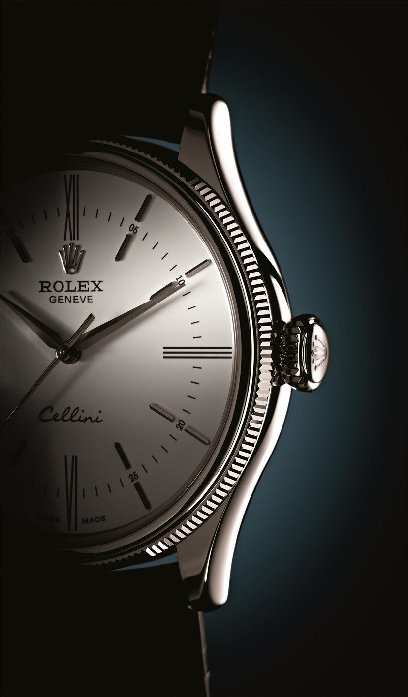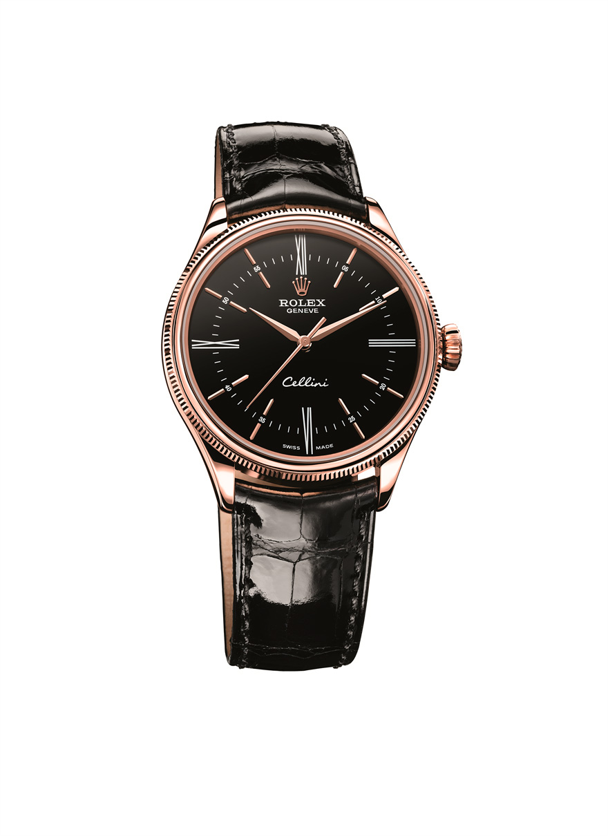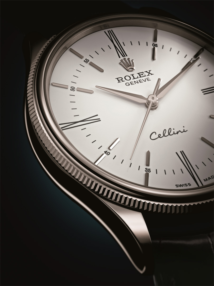 Caja: Oro Everose o blanco de 18 quilates , con acabado pulido Diámetro 39 mm Doble bisel, abombado y estriado Cristal de zafiro abombado Corona enroscada, ensanchada, con emblema Rolex Fondo abombado y enroscado Hermético hasta 50 metros Esfera: Blanca o negra lacada Manecillas e índices en oro rosa o blanco de 18 quilates Funciones: Horas y minutos. Segundero central Movimiento: Movimiento de manufactura automático Certificado COSC Espiral Parachrom azul con