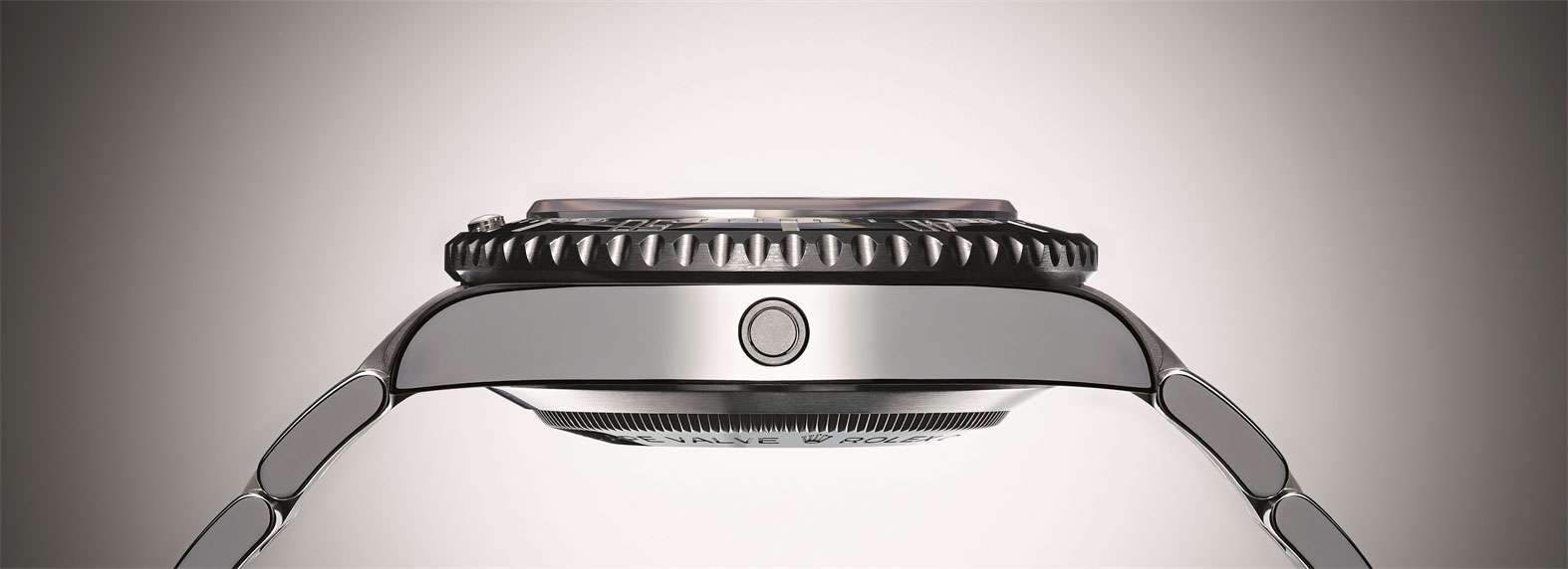 Caja: Oyster (carrura monobloque, fondo y corona enroscados) de superaleación de acero inoxidable 904L con acabado satinado Diámetro 40 mm Bisel giratorio unidireccional graduado 60 minutos con disco Cerachrom negro de cerámica, números y graduaciones grabados y depósito de platino realizado con el sistema de pulverización catódica magentrón (PVD) Válvula de helio Cristal de zafiro resistente a las rayaduras Corona enroscada