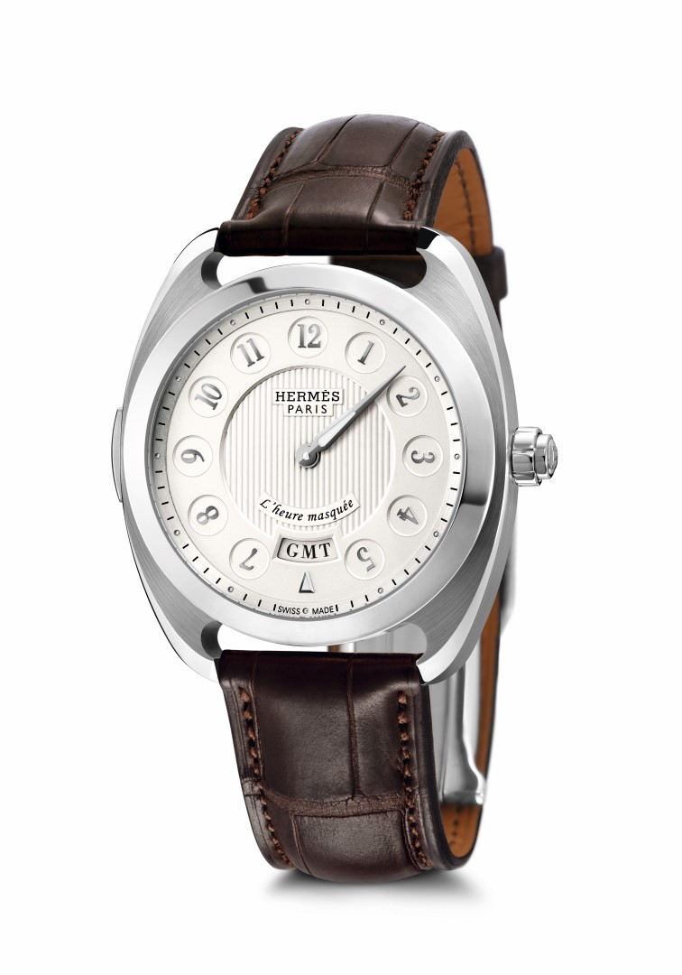 - Pulsador integrado en la corona, que permite desvelar la aguja de las horas y la ventanilla del segundo huso horario
