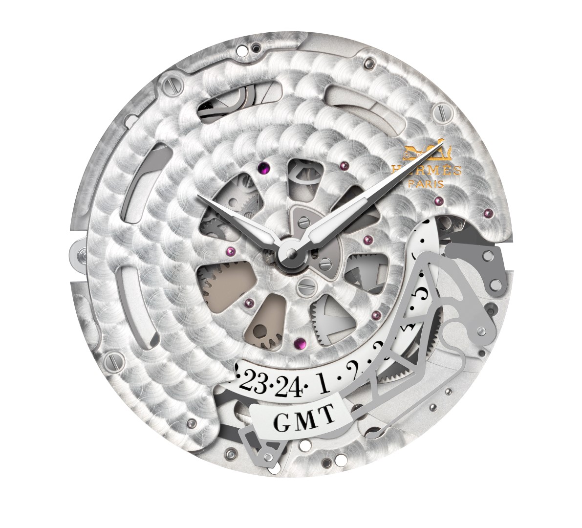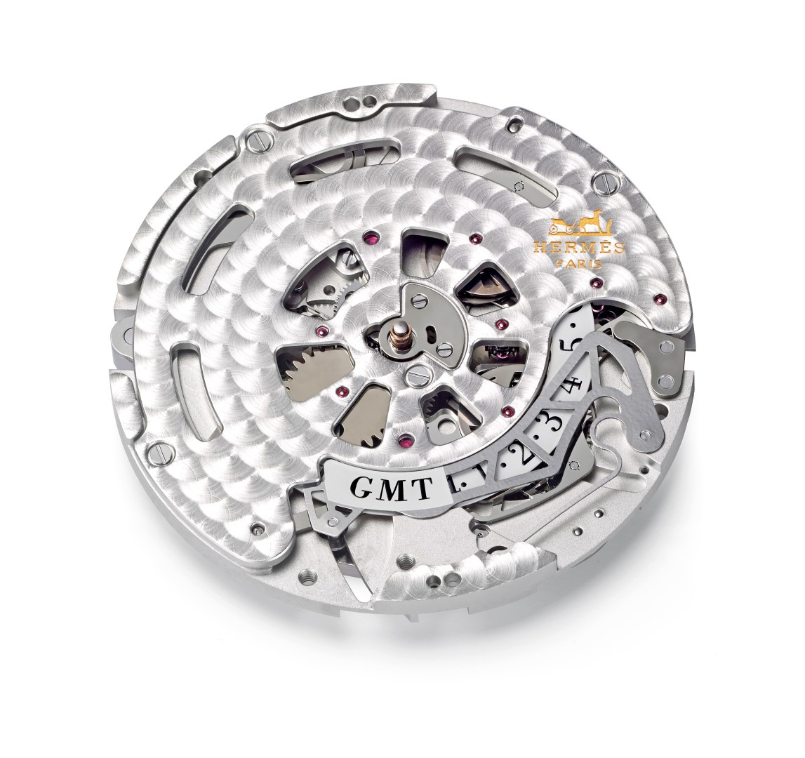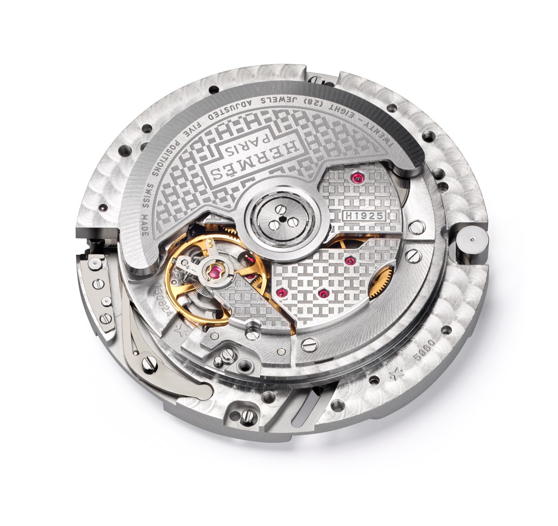 - Platina con acabado perlado y acaracolado, puentes y masa oscilante satinados y filigrana de H