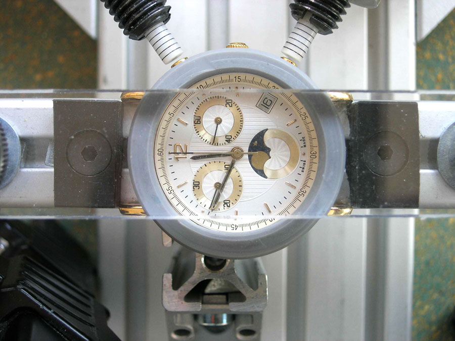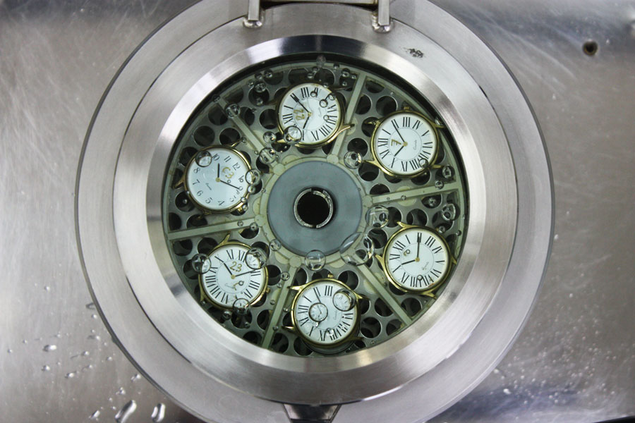La quinta prueba es la que vimos en Fleurier, y es única. Consiste en una máquina con cajas en las que se introducen los relojes a probar. Esta máquina reproduce de manera tridimensional y en tiempo real situaciones de la vida diaria seguidas por períodos de calma. Todo ello para simular 24 horas de uso del reloj, después de las cuales el reloj debe mantener una exactitud de 0/+5 segundos porque si no es rechazado. Se ve mejor en este pequeño vídeo que hice: