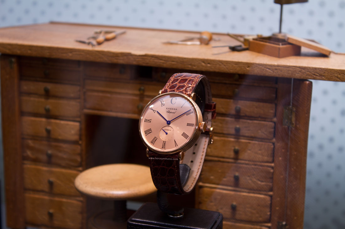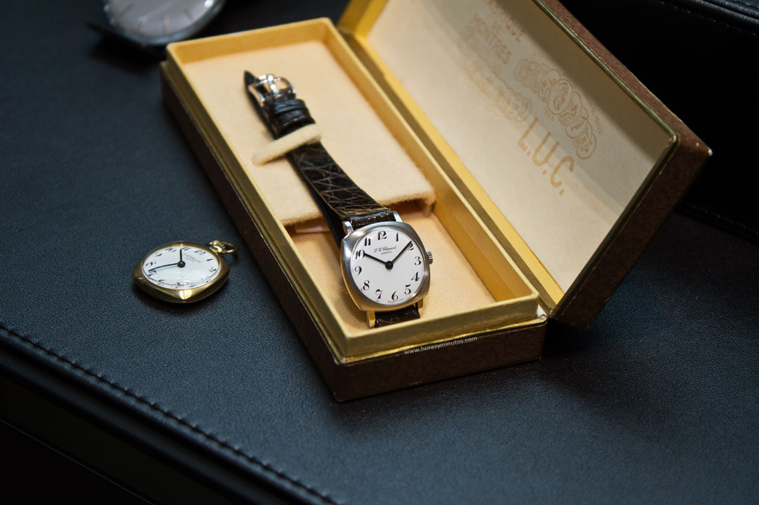 En la planta de Meyrin también se aloja el Museo de Chopard, que es un recorrido por la historia de la marca, desde la época pre-Scheufele, pasando por los relojes Eszeha (la marca de la familia alemana antes de adquirir la compañía) y por supuesto los relojes de Chopard. Los relojes de mujer tienen una gran presencia en el museo por el fuerte peso que tenía sobre ellos la joyería. Allí están también los primeros Happy Diamonds, uno de los grandes éxitos de la casa. Viendo todos esos relojes te das cuenta del increíble fondo de armario que tiene la empresa; una fuente de inspiración casi inagotable.
